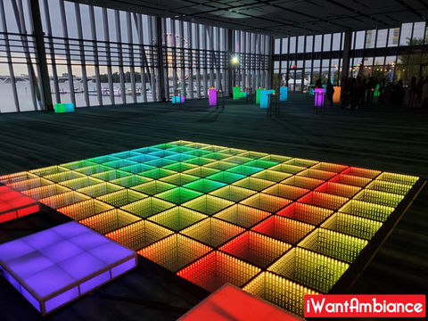 Introducing our brand new 3D Infinity LED dancefloor!!! What is it you ask? It is a dancefloor with LED lights.