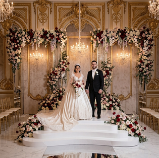 Designed to elevate your ceremony—literally and aesthetically—this multi-tiered, high-gloss stage creates a breathtaking focal point that commands the room. With its sleek curves and reflective finish, it doesn't just host your vows; it transforms them into a royal spectacle.