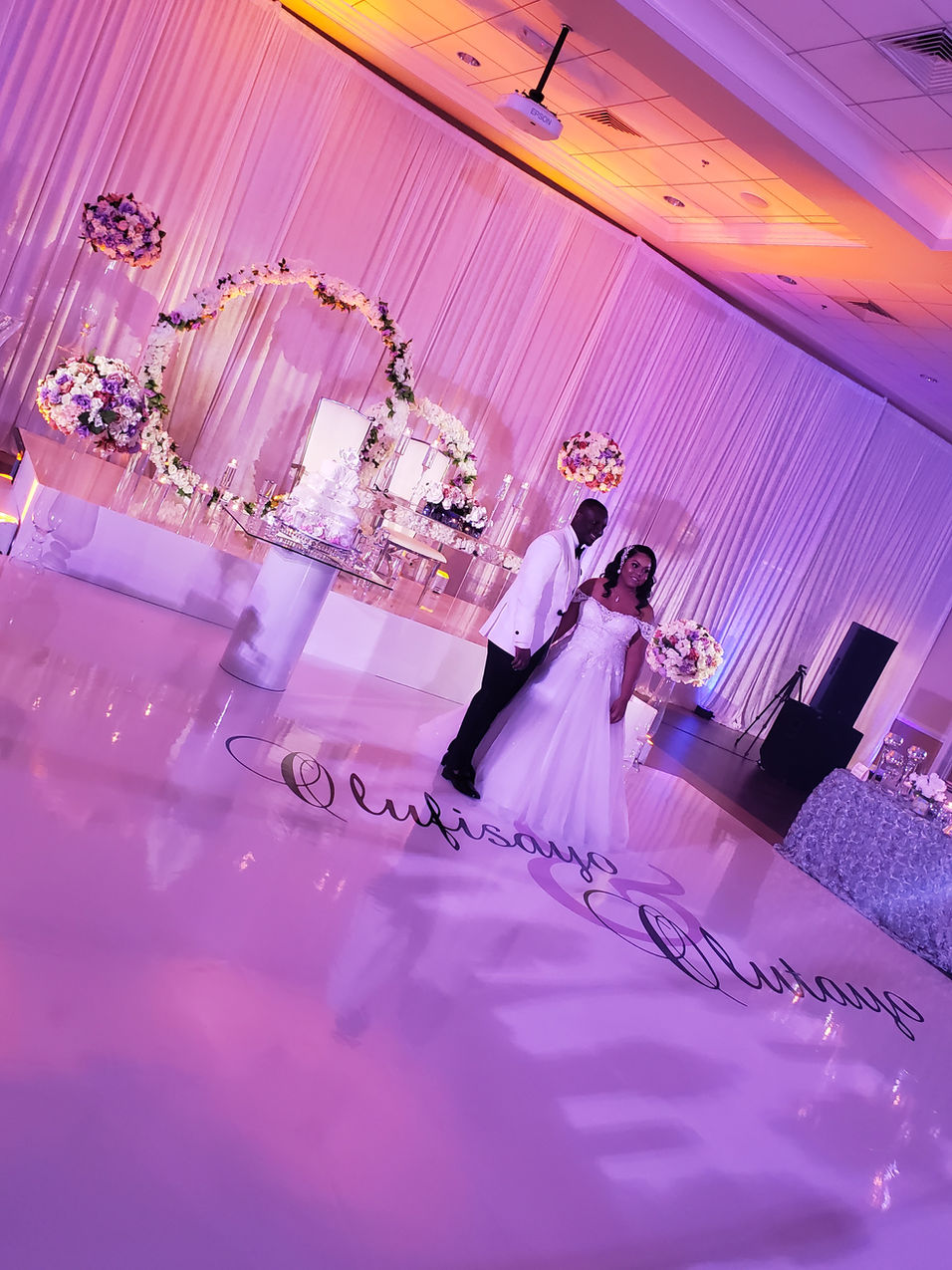 We're here for you no matter how you want to jazz up your ballroom! We’ve got enough material to cover a ballroom with a capacity of 500 people. With our white or black diamond velvet draping materials, we can meet all your draping needs.
